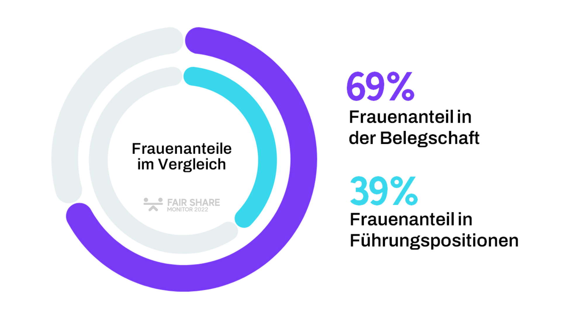 - die FAIR SHARE Lücke errechnet sich aus der Differenz zwischen dem Anteil von Frauen in Führungspositionen und dem Anteil von Frauen an der Belegschaft.