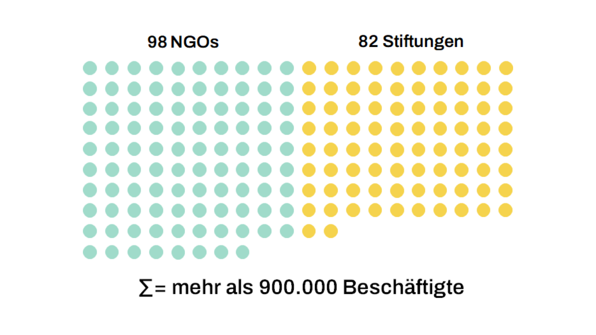 Während der erste FAIR SHARE Monitor 2020 rund 80 zivilgesellschaftliche Organisationen in den Blick nahm, ist die Erhebung mittlerweile auf 180 Nichtregierungsorganisationen (NGOs) und Stiftungen angewachsen, die zusammengenommen mehr als 900.000 Menschen beschäftigen.